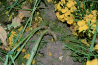 The centre of a swirl of crop is often marked by a bare area of soil or a ‘hole’ in the middle of a whorl of stems, and is frequently offset from the mathematical centre, sometimes by several feet. In some formations individual stems have been drawn into the outer edges of circles from behind standing crop, which clearly precludes the use of physical implements. The direction of crop flow is often different below the top layer of flattened crop. Multi-tiered, multi-directional layering has never been replicated by the use of feet, planks, garden rollers or plastic pipes.