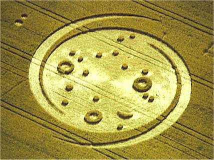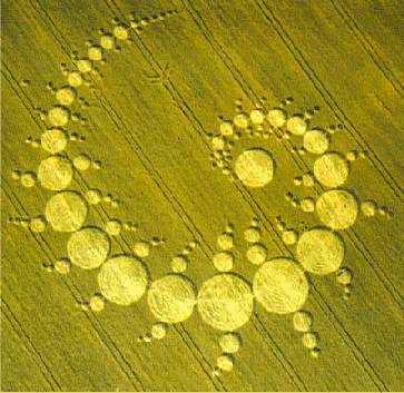Milk Hill, Wiltshire, 12 August 2001. The largest crop pattern of all time, 878 feet across, consisting of 409 circles.