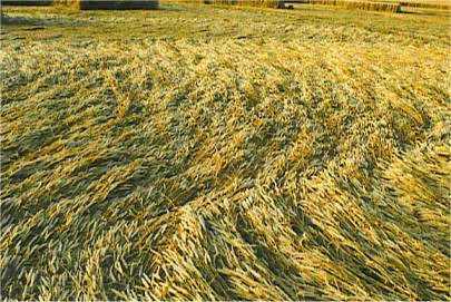 Fig. 5.4 Geometric and nongeometrically downed crop in the same field.