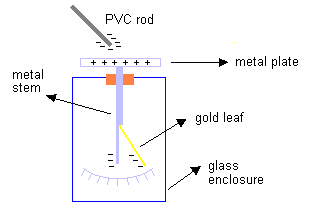 the gold leaf lifts away from the stem as a result of electrostatic repulsion.