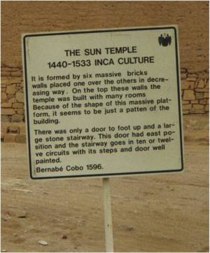 Fig. 2.17 Pachacamac Temple of the Sun and an ‘English’ sign. The temple is