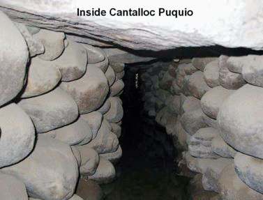 The Nazca people are believed to have built the impressive system of tunnels, wells and trenches – known collectively as puquios – to obtain water from subterranean water sources.32 But the truth is that no one can say for certain who originated them. Most of the excavated tunnels are less than one metre square, but some are about two metres high. The walls of the tunnels are lined with river cobbles without the use of mortar, and at the uppermost end the water filters between the stones into the gallery. The roof of the galleries is made of dressed granite slabs or wooden logs. The tunnels lie about 3 to 6 m underground, and it is not known for how many kilometres they run. Two of them pass beneath the bed of the Nazca river. The tunnels are connected with the surface by funnel-shaped holes (ojos), which also served as wells. The local population believed that the water in the puquios flowed from a great lake beneath Cerro Blanco – a 2500-m-high mountain not far from Nazca, topped by an enormous sand dune. There are 36 puquios still functioning in the Nazca drainage today.