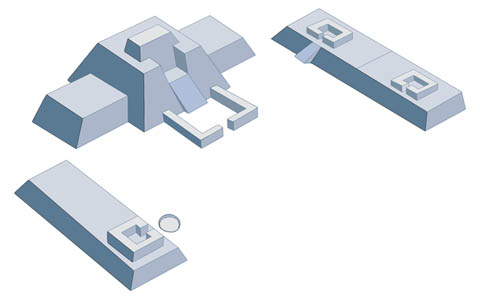Less than one-tenth the magnitude of the great platform at Sechín Alto, what the Castillo lacks in size is compensated for by remarkable engineering, fine masonry, and marvelous stone art. The engineering is fascinating because a quarter of the Castillo interior is hollow and occupied by a labyrinth of narrow galleries roofed by great slabs of stone. Built at different levels, some galleries are connected by stairways and by an elaborate maze of small drains and vents that pass beneath the exterior plazas. ... [B]y flushing water through the drains and venting the sound into the chambers and then out again the temple could, quite literally be made to roar! ...