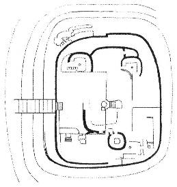 Fig. 3.1 From the 3rd millennium BC onwards, early Andean ceremonial sites, with their curved walls, are similar in design to towns in the ancient Middle East. Left: Layout of Warka, Sumeria (Iraq). Right: La Galgada, Peru.9