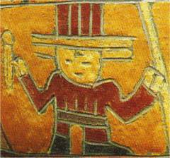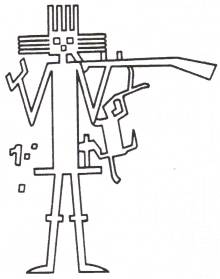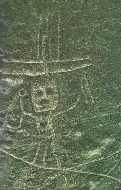 Fig. 4.24 The ‘man with a hat’ (left), 20 m high, is located at the bottom of a slope. It bears a reasonable resemblance to a Paracas iconographic figure (right).3 Does this crude glyph on a hillside illustrate the limited glyph-making skills of the Nazca or preceding Paracas culture?
