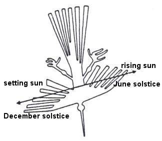 Maria Reiche was a prominent proponent of the theory that at least some of the Nazca lines were intended to point to the places on the horizon where the sun and other celestial bodies rose or set, and that some figures represented constellations. She proposed, for example, that the spider represents Orion, and the monkey Ursa Mayor. Astronomer Phyllis Pitluga believes that the spider was designed as an image of Orion as it set along the western horizon about 2000 years ago. Studies by Gerald Hawkins in 1973 and Anthony Aveni in 1982 identified only a few specific alignments to the positions of the sun, moon and certain stars. For instance, the beak of the hummingbird is intersected by a line that targets the point of sunrise at the December solstice.4