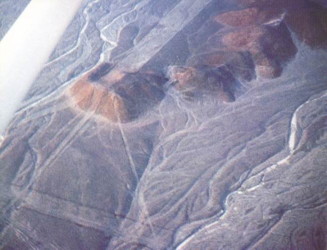 Fig. 4.15 A 62-metre-wide trail ascends a small hill then spreads out from the summit in several narrower lines. The middle of these five narrower lines carries on for 10 km through the plain.9 (Courtesy of Erich von Däniken)