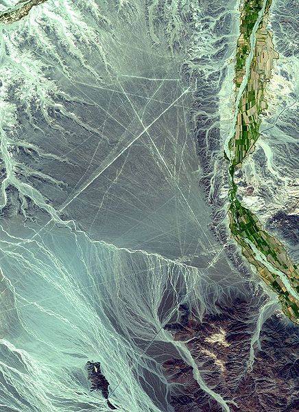 Fig. 4.12 Nazca lines (not to be confused with wavy erosion patterns) seen from the SPOT satellite.6