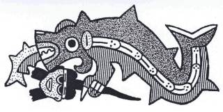 Fig. 4.22 Top: Killer whale depicted on a Nazca ceramic.1 Bottom: A killer whale glyph and a fish/whale glyph.