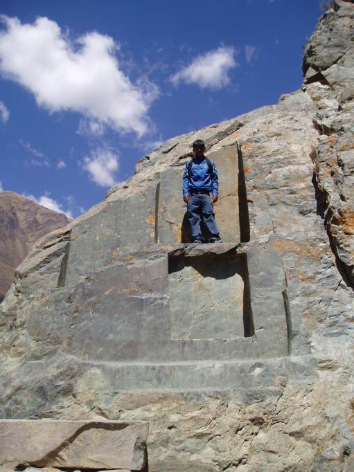 There was once a gateway on top of the Akapana. The underside of the lintel was cut at an angle, which matched the top of the jamb below it, requiring the bottom of the step moulding in the lintel to be carved out of the bevelled surface of the jamb. Jean-Pierre Protzen writes: ‘These details bespeak a remarkable sophistication in stereotomy, or the art of stone-cutting, presuming an understanding, if not knowledge, of descriptive geometry.’6