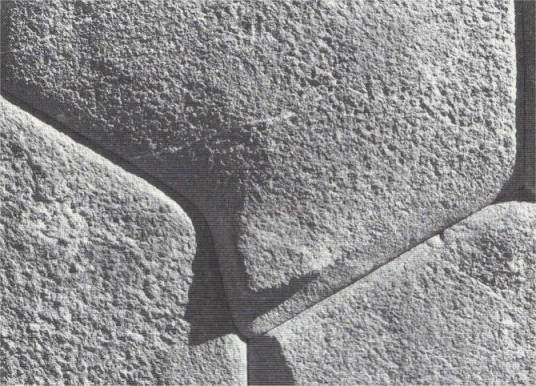Pounding a block with a hammer stone leaves scars, or pit marks, and in the case of limestone, it produces whitish discolouration in or around the scar. Protzen sees the fact that the stones used in Inca walls bear similar scars as proof that only his own method had been used. He cites several writers from the time of the conquest in support of his view. Garcilaso de la Vega wrote in 1609 that the Incas ‘had no other tools to work the stones than some black stones ... with which they dressed the stone by pounding rather than cutting’. Jose de Acosta, a Jesuit priest travelling with the conquistadors, wrote in 1589: ‘All this was done with much manpower and much suffering in the work, for to fit one stone to the other, until they were adjusted, it was necessary to try the fit many times.’3 There is no doubt that such techniques were used during Inca times. But was that the only method the Incas used? And more importantly, were all ‘Inca’-style buildings really constructed by the Incas? Or was the polygonal, cyclopean masonry the work of a far earlier culture?