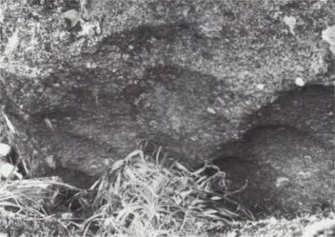 Fig. 5.22 In this joint at Sacsayhuaman part of upper stone is missing, revealing the shiny upper surface of the lower block.