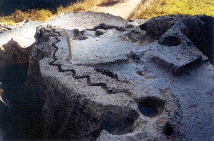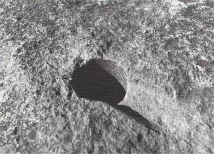 Fig. 7.22 This stone block has a 6 mm wide groove containing drilled holes. It could not have been made with stone or copper tools. The diameter of the small holes varies by no more than 0.1 mm. Since the rock is brittle, it must have been drilled with a tool fixed on a mount, as any wobbling would have left visible traces.7