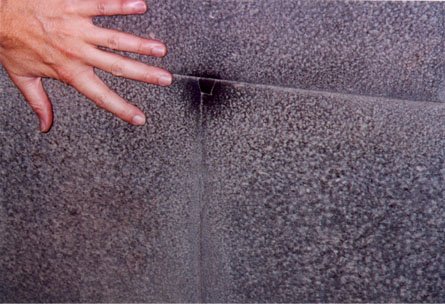 Fig. 5.21 Detail of wall in Cuzco, showing how the surface colour and structure near the joints differ from the rest of the block.