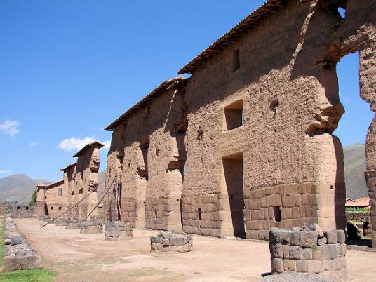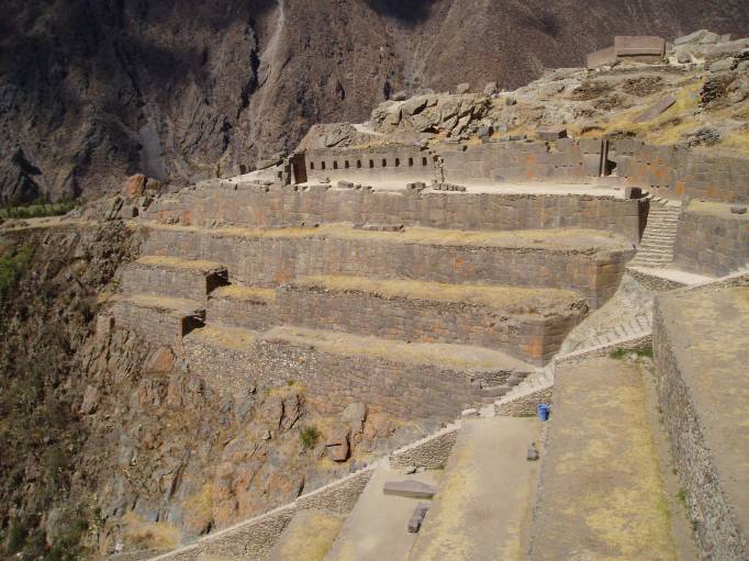 Garcilaso de la Vega tells of a disaster that occurred while the Incas were transporting a large stone from a quarry to Ollantaytambo. The stone is known as ‘sayccusca rumi’ (‘tired stone’) and measures 6.2 m (20'4") long, 4.6 m (15'2") broad, and 1.1 m (3'6") thick. It was brought across the river but abandoned 780 yards from the ascent to the ruins. He writes: