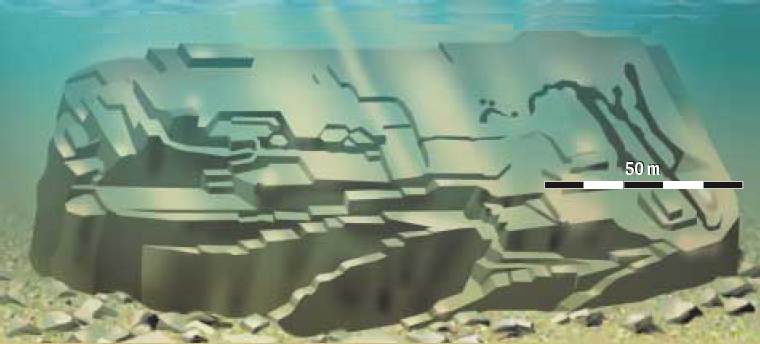 A couple of thousand years ago the water level of Lake Titicaca was some 30 m higher than today and extended to the edge of Tiwanaku. Over the past 100,000 years, it has been as much as 100 m above its current level, but also far lower. Various ruins and artefacts have been found in the lake at depths of up to 70 metres or more, including a 30 kg golden idol, various vessels, a 200-m-long, 50-m-wide temple, a terrace for crops, a pre-Inca road, and an 800-m-long containing wall. It is thought they might be associated with the Chiripa culture, and date back to 1500-2000 BC.2