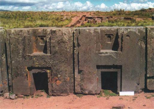 According to Posnansky, the Kalasasaya is oriented about 1° east of true north, whereas the Akapana, semi-subterranean temple, and platforms at Puma Punku are oriented 2.8° east of north.15 He argues that the latter structures are older than the Kalasasaya, but were modified in later times. He draws attention to the extreme level of erosion displayed by some of the stones at Tiwanaku and Puma Punku. He believed they must have been exposed to the elements for many thousands of years, and since many were found entirely covered with alluvial mud, where they many have lain for long ages, they could be of extreme antiquity.16 The Gateway of the Sun was rediscovered lying ‘face’ down on the ground, and its west side (probably the outside, though often called the ‘back’) is far more eroded than the east side. Fred Dick believed it could be at least 10,000 years old, but was unlikely to be more than 80,000 years old given that the door is less than 2 m high. But other ruins at Tiwanaku and at Peruvian ‘Inca’ sites could be hundreds of thousands of years old and the work of genuine giants.17