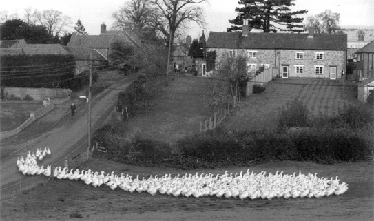 In their book A Different Approach to Cosmology, Fred Hoyle, Geoffrey Burbidge and Jayant Narlikar use the above photo to illustrate the conformist approach to standard big-bang cosmology. ‘We have resisted the temptation to name some of the leading geese,’ they say.