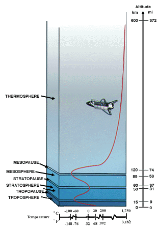 drops to -120°C at the mesopause. In the thermosphere the gases are even thinner,