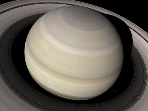 The atmosphere of Saturn, one of the four gas giants, circulates