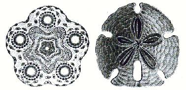 Fig. 3.2 Left: Sea cucumber (cross section). Right: Sand dollar (sea urchin).