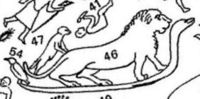 The Lion is, therein, drawn, standing upon the Hydra; and his tail is almost straight, and pointing down in an angle of 40 or 50 degrees. Which position very well agrees with the original formation of those Constellations. But, in many places[*], we see the Lion with his tail turned up over his back, and ending with a Serpent’s head; thereby, shewing that the Lion had been inverted: which, indeed, must have been the case with the whole Zodiac, and every other Constellation, when the Pole had become inverted.
