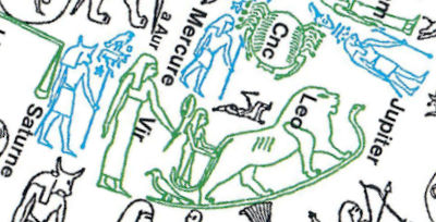 There is also, in Denon’s second volume, a circular Zodiac, where the Lion is standing on [p. 4] the Serpent, and his tail forming a curve downward: from which we find, that, though six or seven hundred thousand years must have past between the two positions, yet they had made but little or no difference in the Constellations of Leo and the Hydra; while Virgo is represented very differently in the two – in the circular Zodiac, the Virgin is nursing her Child: but it seems that they had not had that idea when the Pole was first within the plane of the Ecliptic; for in this Zodiac [i.e. the rectangular zodiac], as given by Denon, we see three Virgins between the Lion and the Scales; the last of which holds, in her hand, an ear of wheat. It is much to be lamented, that, there is in this Zodiac, a breach of the figures in the latter part of Leo and the beginning of Virgo, which have taken away one Decan out of each sign.