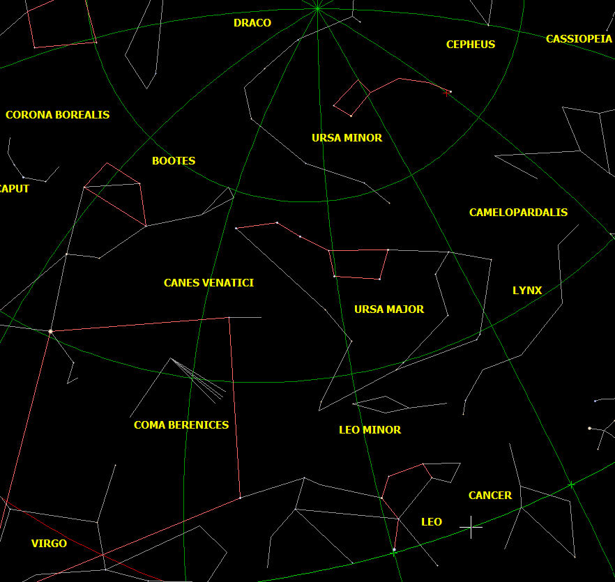 Ursa Minor, Ursa Major, and the north celestial and ecliptic poles.
