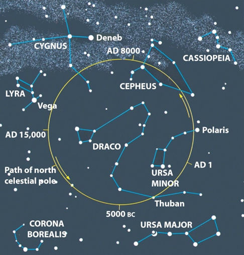 The changing polestar. According to theosophy, the earth’s axis does not trace a circle around the