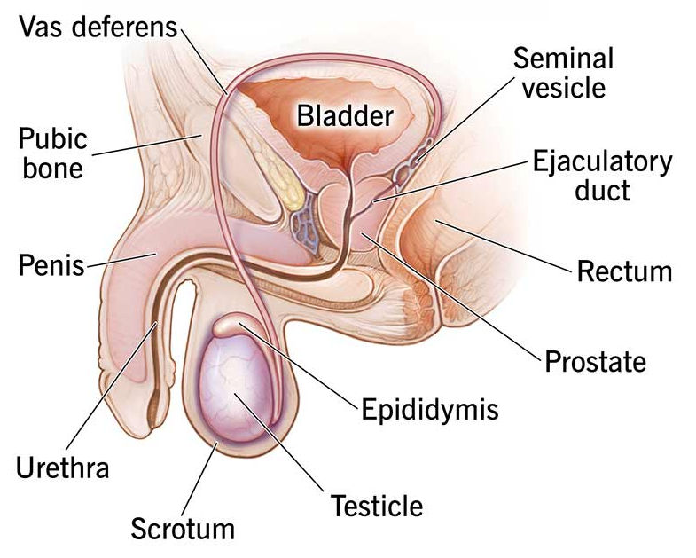 The prostate is a walnut-sized gland located between the bladder and rectum, and produces part of the fluid that makes up semen. 15% of men experience inflammation of the prostate (prostatitis) at some point in their lives. When a man becomes sexually excited, all the pelvic reproductive organs, including the prostate, become congested with blood. John Tilden MD argued that when the prostate is continually subjected to this engorgement, it becomes inflamed and enlarged; this can impede the flow of urine, and the prostate may eventually become a fibrous tumour.20