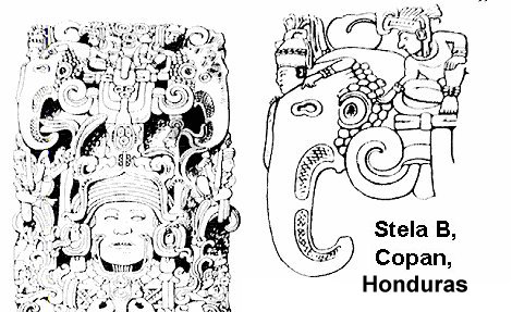 An impressive piece of evidence for an east Indian presence in Mesoamerica is the 8th-century stela of a Mayan noble from Copán, Honduras. At the top of the stela are what appear to be two elephant figures – which are remarkable because elephants were not indigenous to America. Conventional scholars insist that the long-nosed animals are local tropical birds with enlarged beaks – perhaps tapirs or macaws. The figures mounted on the ‘elephants’ (no longer visible today) are wearing turban-like headdresses resembling the headgear of Hindu elephant riders, or mahouts, of the same period. A long-nosed figure looking like Ganesha, the Hindu elephant-headed god, also appears on the stela.16 Ganesha was particularly worshipped by Indian traders and merchants.