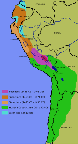At first the Incas collaborated peacefully with other ethnic groups in the Cuzco region. Around 1430 the Chancas from the north invaded the area. After defeating them, the Incas began the age of expansion under Pachacuti. Quechua was made the official language, and sun worship the official religion.