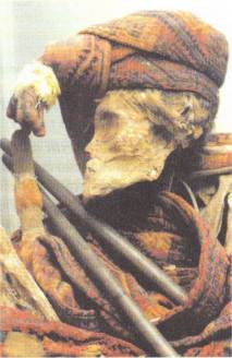 Fig. 3.9 Peruvian Inca mummy (14th-15th century) with natural blonde hair, characteristic of the fair, red and light-brown hair found among many South American cultures in Ecuador, Peru, Bolivia and Northern Chile. The fine hair, skin colour and height are typically Caucasian.31