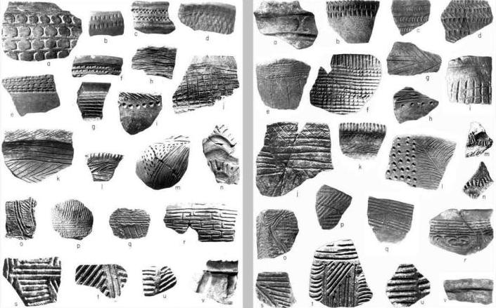 Fig. 3.2 Pottery shards from the Valdivian culture of Ecuador (left) show striking stylistic similarities with pottery produced by the Jomon culture of Japan (right), c. 600 BC.10