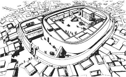 Fig. 2.4 Reconstruction of a prototypical U-shaped monument complex (courtesy of J.Q. Jacobs). There are at least 25 other documented sites in South America that share the distinctive El Paraíso layout.11