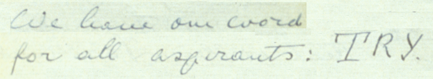 ‘We have one word for all aspirants: TRY.’ (ML 247, #35)