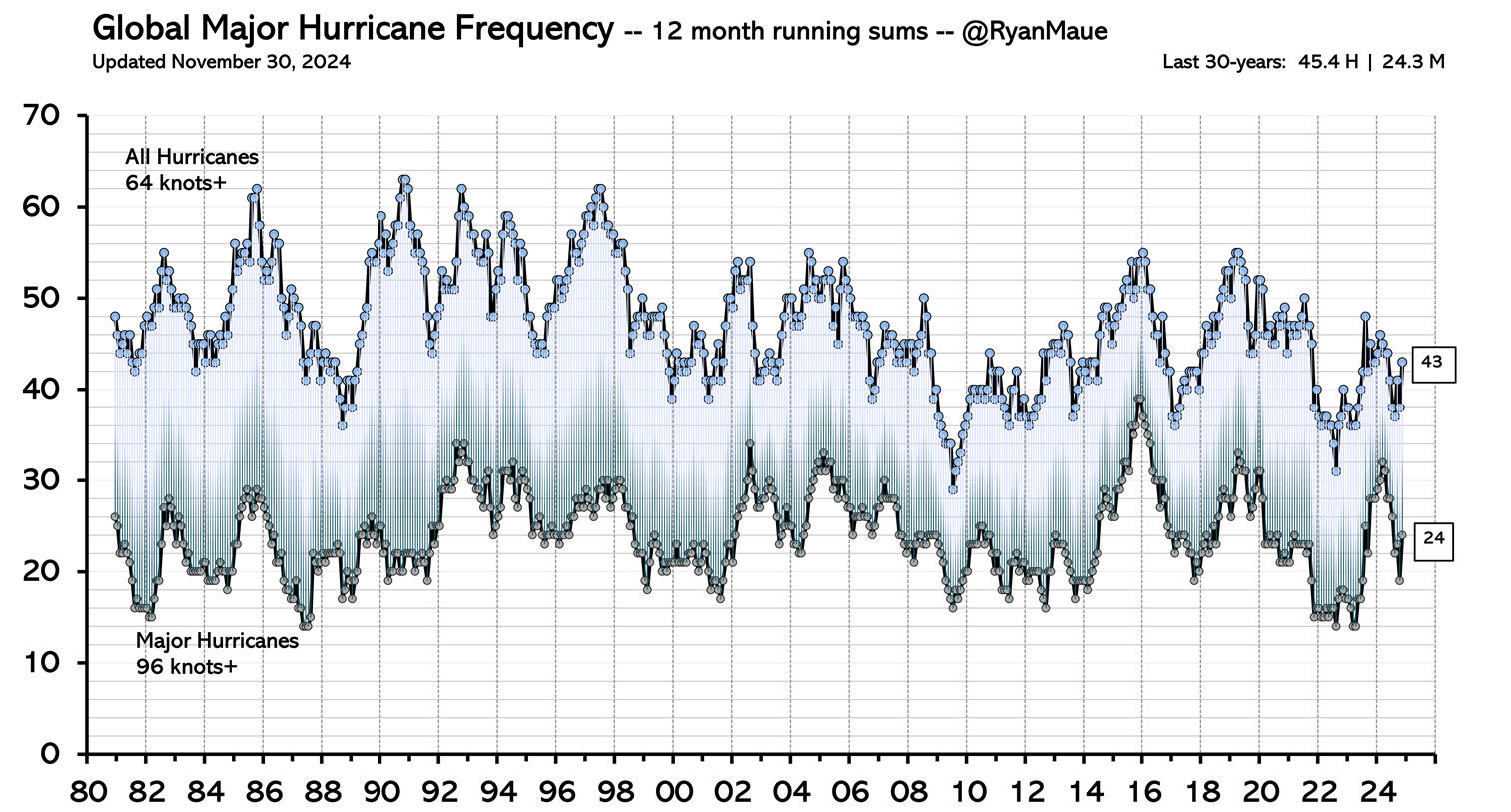 Pielke, Roger, Jr. (2017). Weather-related natural disasters: Should we be concerned about a reversion to the mean? riskfrontiers.com
