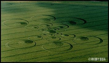 One day, while flying over southern England, pilot Busty Taylor commented to Colin Andrews that he would love to someday find all the previous crop designs wrapped into one stunning new formation. Such a formation appeared the next day, just below where the aircraft had been when Taylor expressed his wish (Andrews, p. 162).