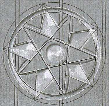 Fig. 8.3 The 1994 ‘Web’ (fig. 3.9) is based on fivefold geometry. Two pentagrams fit perfectly into the formation (Jansen, pp. 77-80).