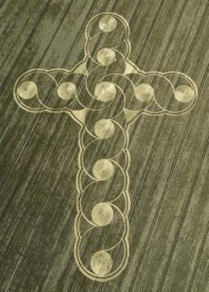 Fig. 10.1 One night in 1988 Colin Andrews asked silently for a Celtic cross to appear as close to his home in southern England as possible. The exact formation he had visualized appeared the next day in the closest unharvested field, four or five miles from where he lived (Andrews, 2003, pp. 32-3).