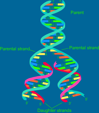 (green) from a double-stranded DNA template (orange).