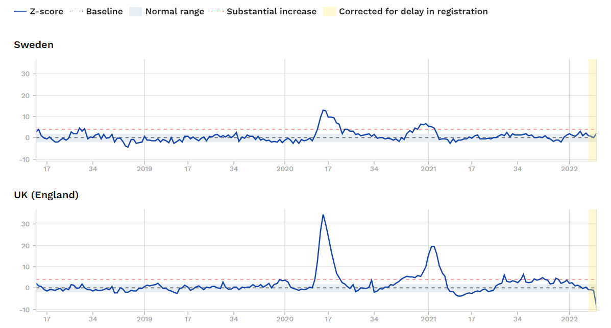 All-cause mortality in Sweden and England. (euromomo)