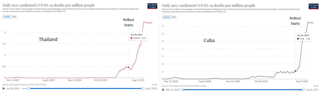 Two countries with relatively little Covid where deaths spiked after vaccine roll-out. (Kirsch)