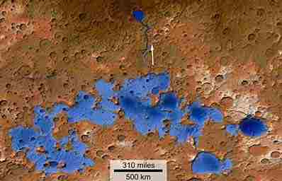 Vast beds of sediments, laid down in martian lakes and oceans, have been observed, and stretch for hundreds of kilometres; in Valles Marineris the sediments are up to 7 km thick. The water could have come from atmospheric precipitation in the form of rain and snow, or from the rapid melting of ground ice (permafrost) triggered by some sudden event.