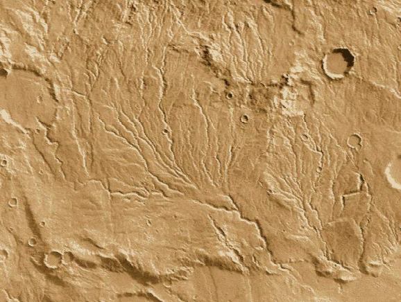 Nirgal Vallis, south of the eastern part of Valles Marineris, a long, winding valley with few tributaries.