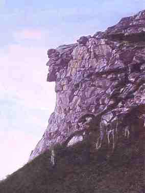 Lying 18 km northeast of the Face, the Cliff is an anomalously straight ridge, approximately 2.5 km long, perched on top of an elongated, flat-topped mesa surrounded by the ejecta blanket of a nearby crater. It lies roughly in line with the Face and the City.