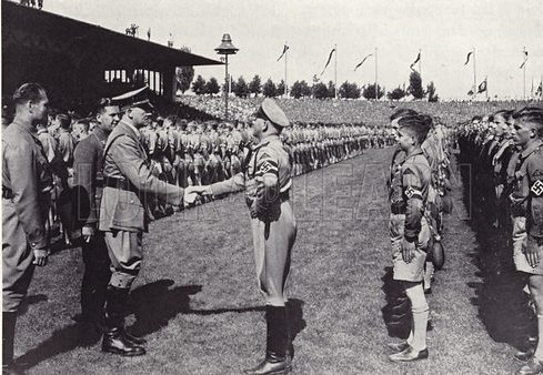 Hitler greeting members of the Hitler Youth, Nuremberg Rally, 1936. (lookandlearn.com)