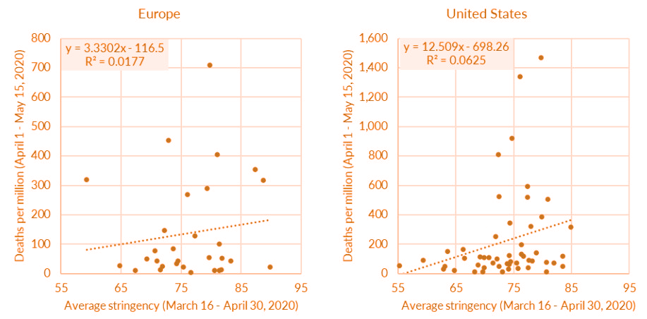 Correlation between lockdown stringency and Covid mortality in European countries and the United States during the first