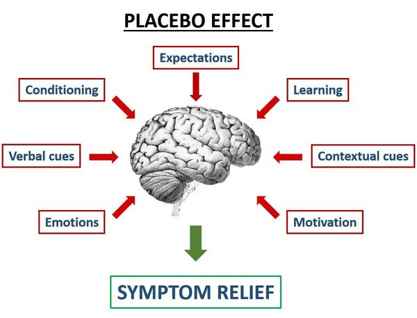 The placebo effect can include changes in body chemistry, such as the release of endorphins (natural painkillers) and hormones. It can also affect neural networks, brainwaves and gene expression (and therefore the proteins our bodies make). The placebo effect is stronger in people with a positive, optimistic mindset than in people with a negative, pessimistic mindset. Psychology research estimates that about 70% of our thoughts tend to be negative.