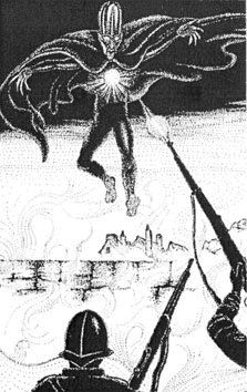 In September 1837 a strange being, dubbed ‘Springheel Jack’, assaulted four separate persons, three of them women, in and around London. In one instance he ripped off the top of a victim’s dress, scratching her belly with iron-like fingers. He was tall, thin, and powerful, wore a cloak, and had pointed ears, glowing eyes, and a mouth that spat blue flames into victims’ faces. After London’s Lord Mayor had declared him a menace, vigilantes attempted to capture Jack, but without success, as he was able to make enormous leaps or simply melted into the night. Sporadic attacks continued during the next two years and a few were recorded in 1843. In 1845, in daylight and in view of numerous witnesses, Jack bounded towards a young prostitute who was crossing a bridge in a London slum. Grabbing her by the shoulders, he breathed fire into her face, tossed her into the open sewer below, and watched her drown. This was the only murder to which he was linked.